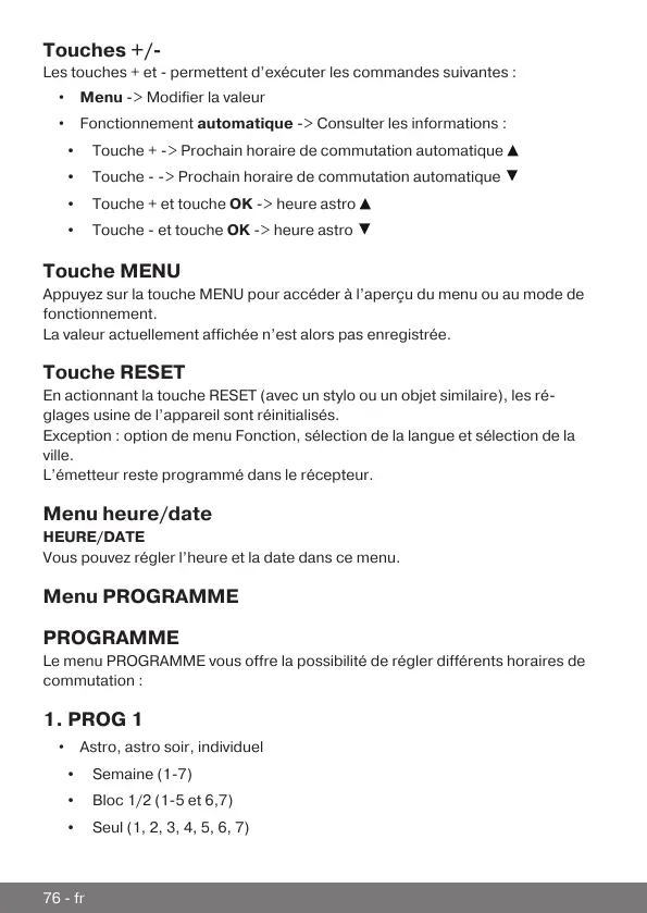 Le menu PROGRAMME vous offre la possibilité de régler différents horaires de