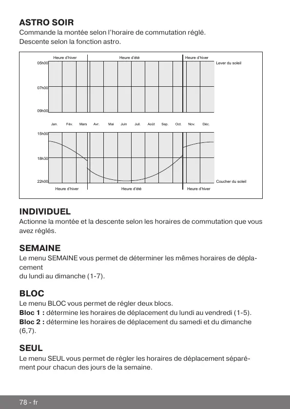 Le menu SEUL vous permet de régler les horaires de déplacement séparé-