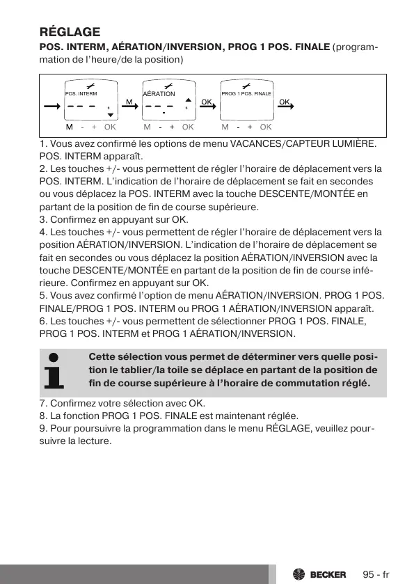 PROG 1 POS. INTERM et PROG 1 AÉRATION/INVERSION.