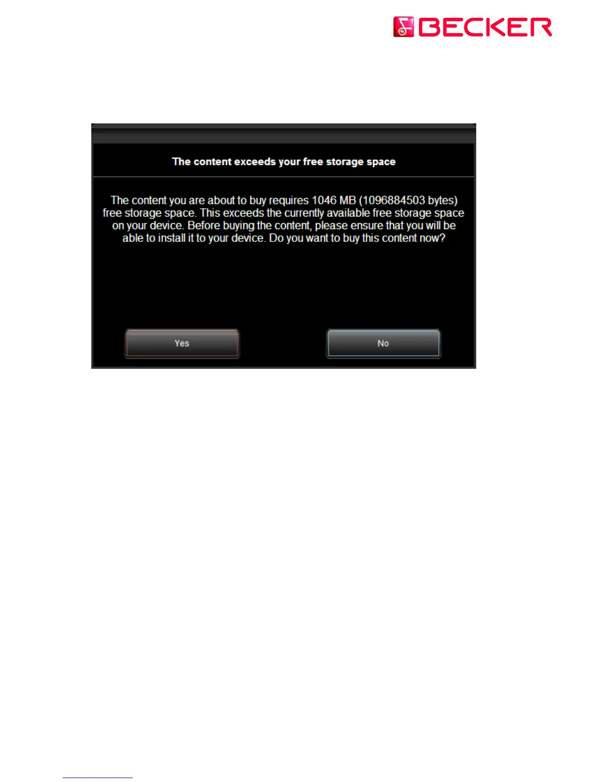 If Content Manager 2.0 recognizes that your connected Becker PND does not have enough