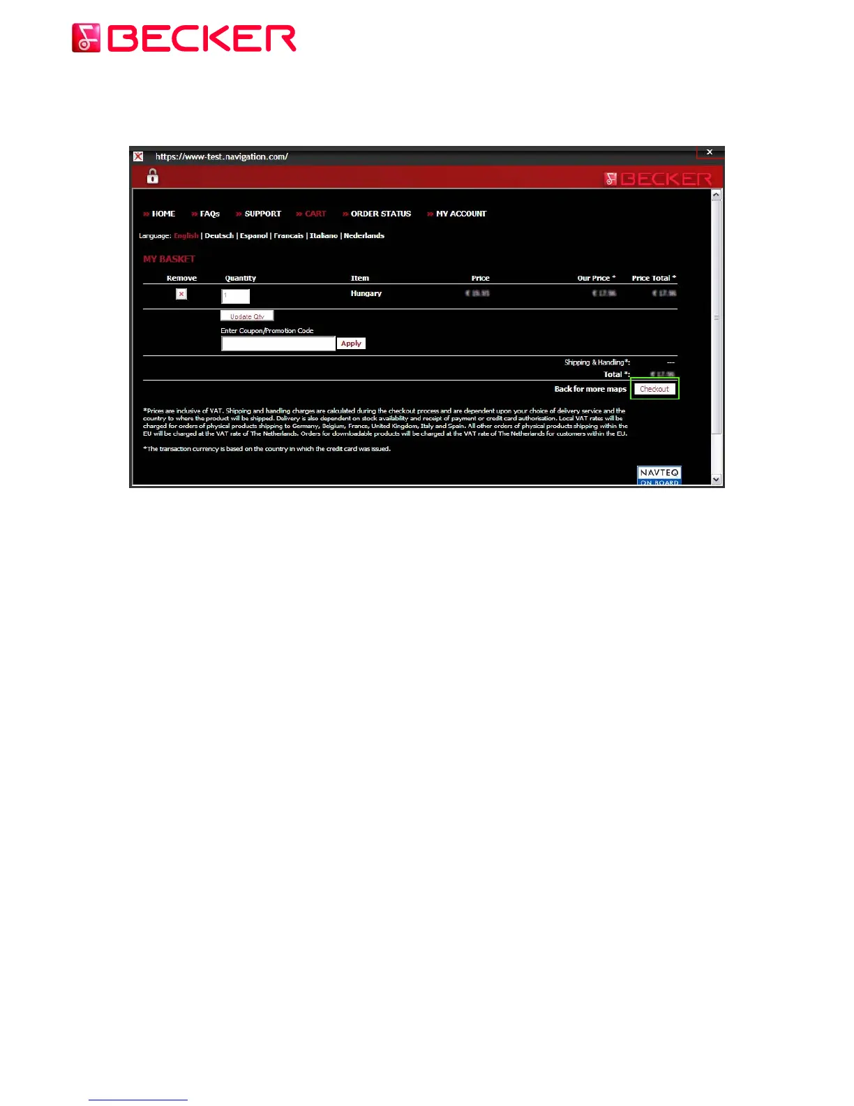 After adding the item to the cart, you will see your cart with a button to start the checkout
