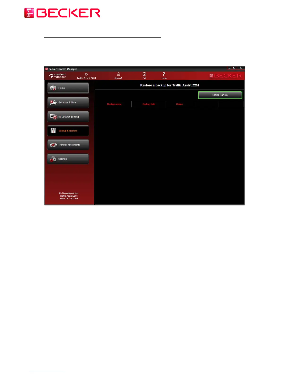 Press the Backup & Restore button in the menu bar on the left hand side and click on Create