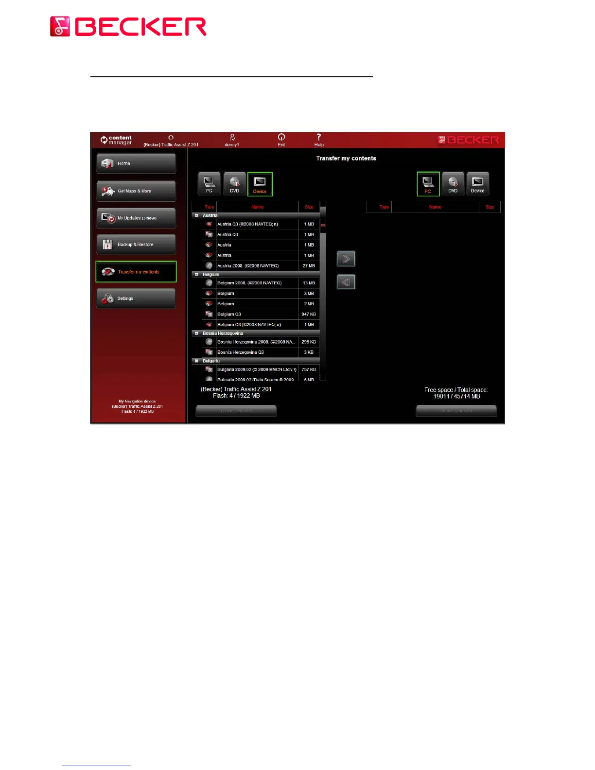 Press the Transfer my contents button in the menu bar on the left hand side.