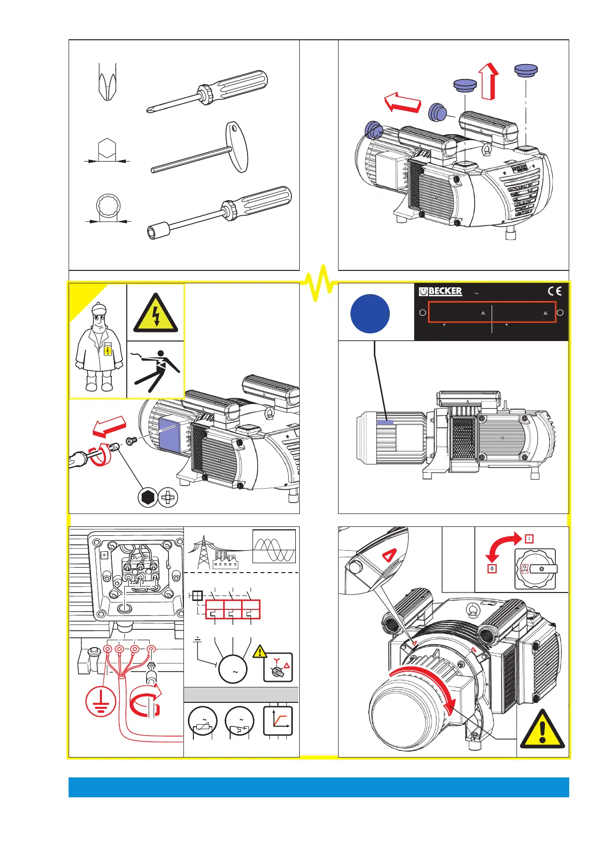 Becker DVTLF 2.250 - Installation and Electrical Connections; Recommended Tools and Accessories; Electrical Wiring and Motor Connection; Device Operation Controls