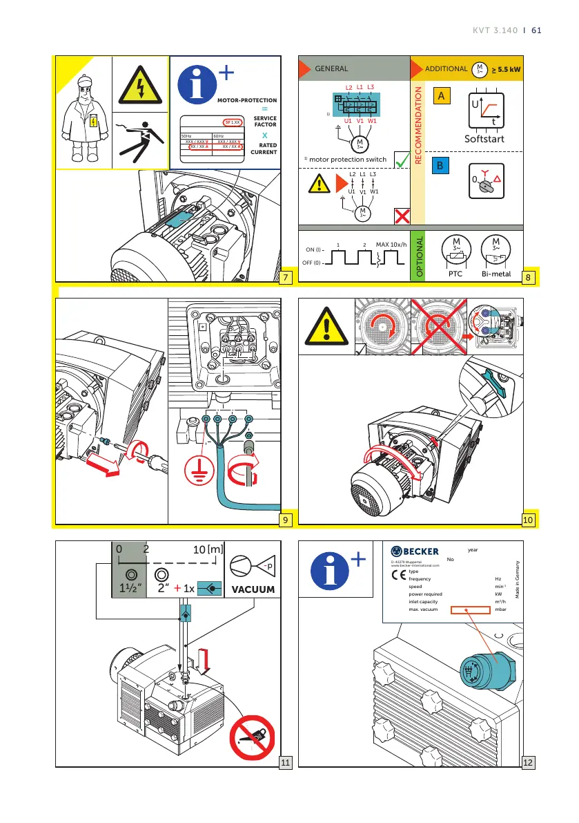 Becker KVT 3.140 - Electrical Connections and Motor Protection; Motor Protection and Service Factor; Operating Controls and Cycle Rate; Optional Features and Recommendations