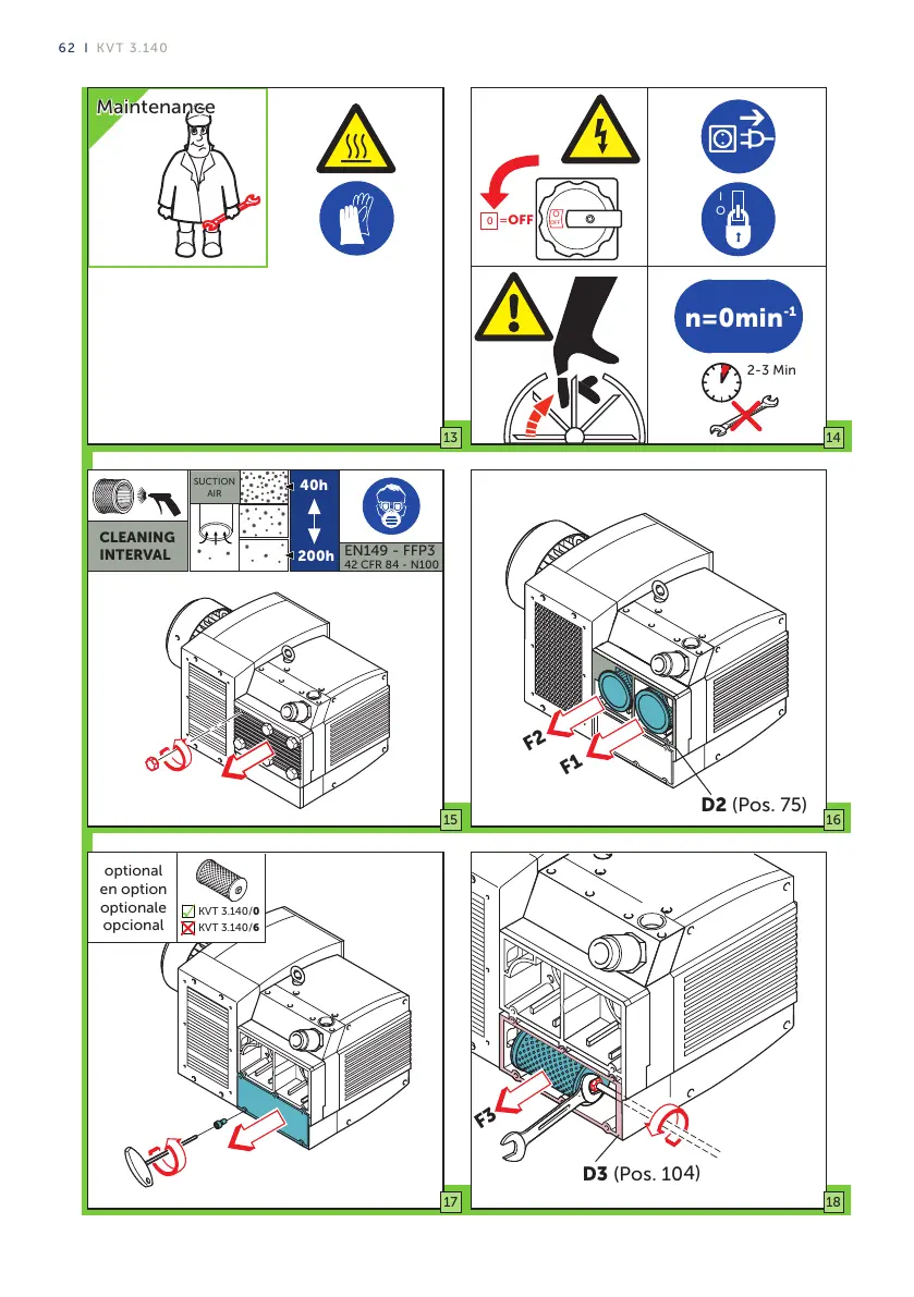 Becker KVT 3.140 - Maintenance and Cleaning Procedures; General Safety Precautions; Cleaning Interval and Filter Type; Filter Replacement Instructions