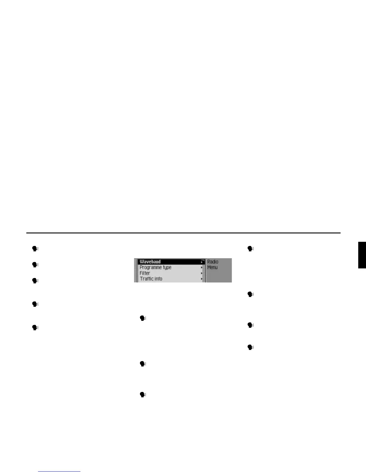 • Call up Waveband menu (page 62).