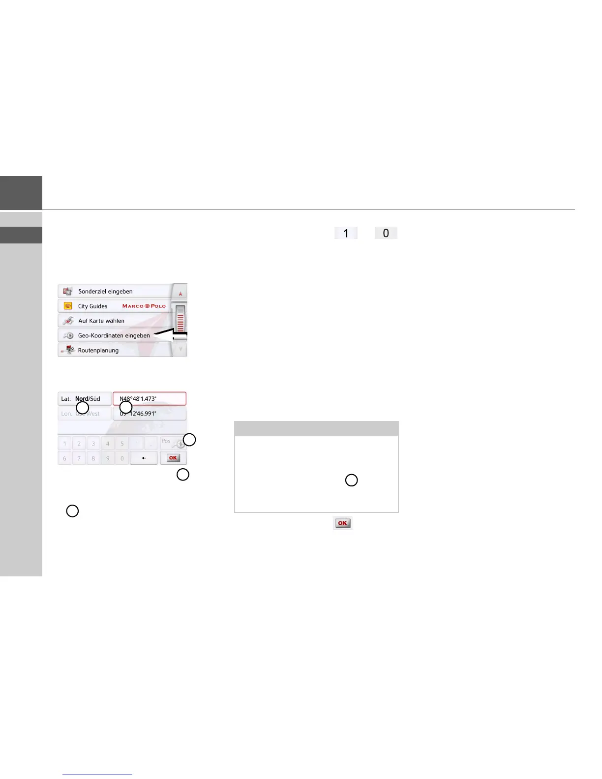 •Die eingegebenen Koordinaten müs-