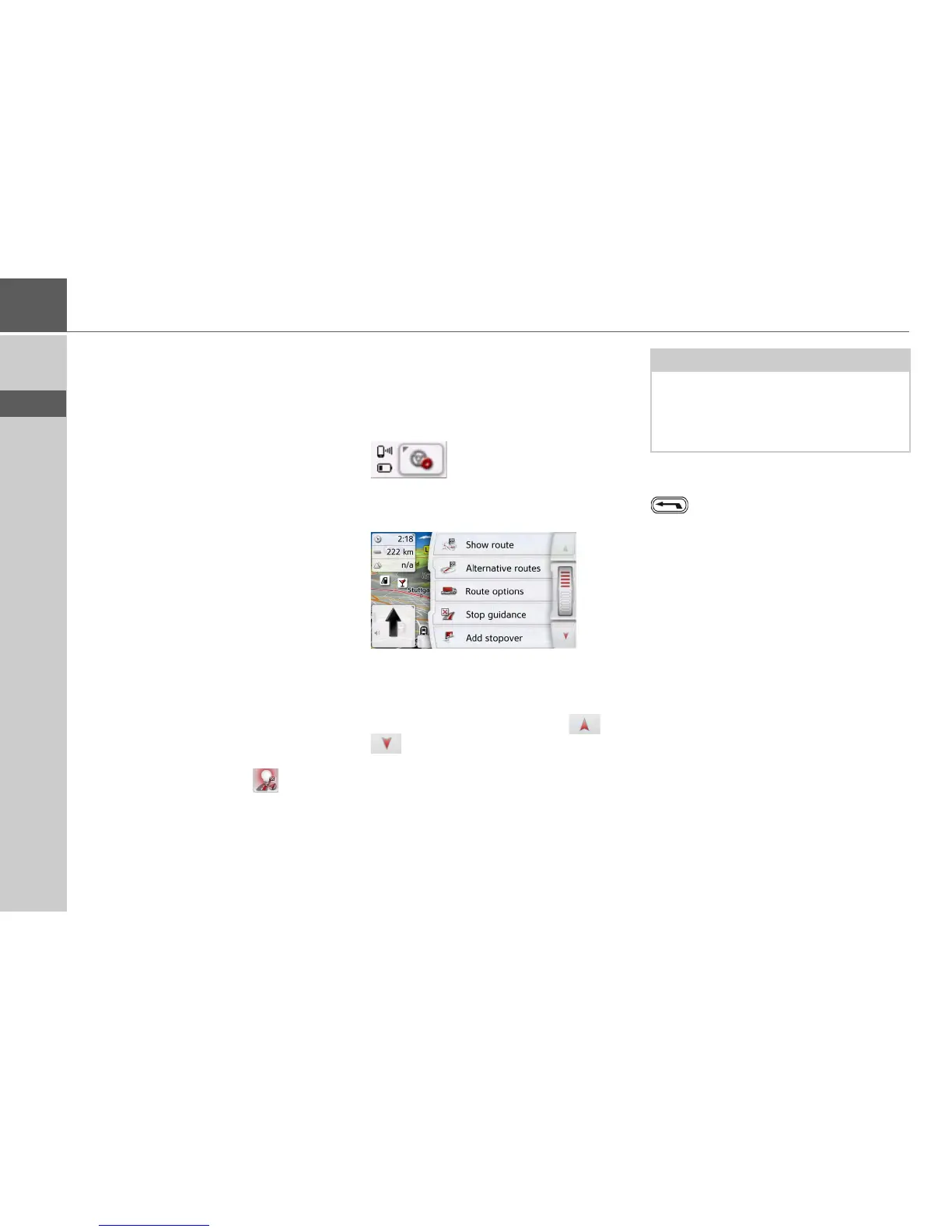 there displayed and the route guidance