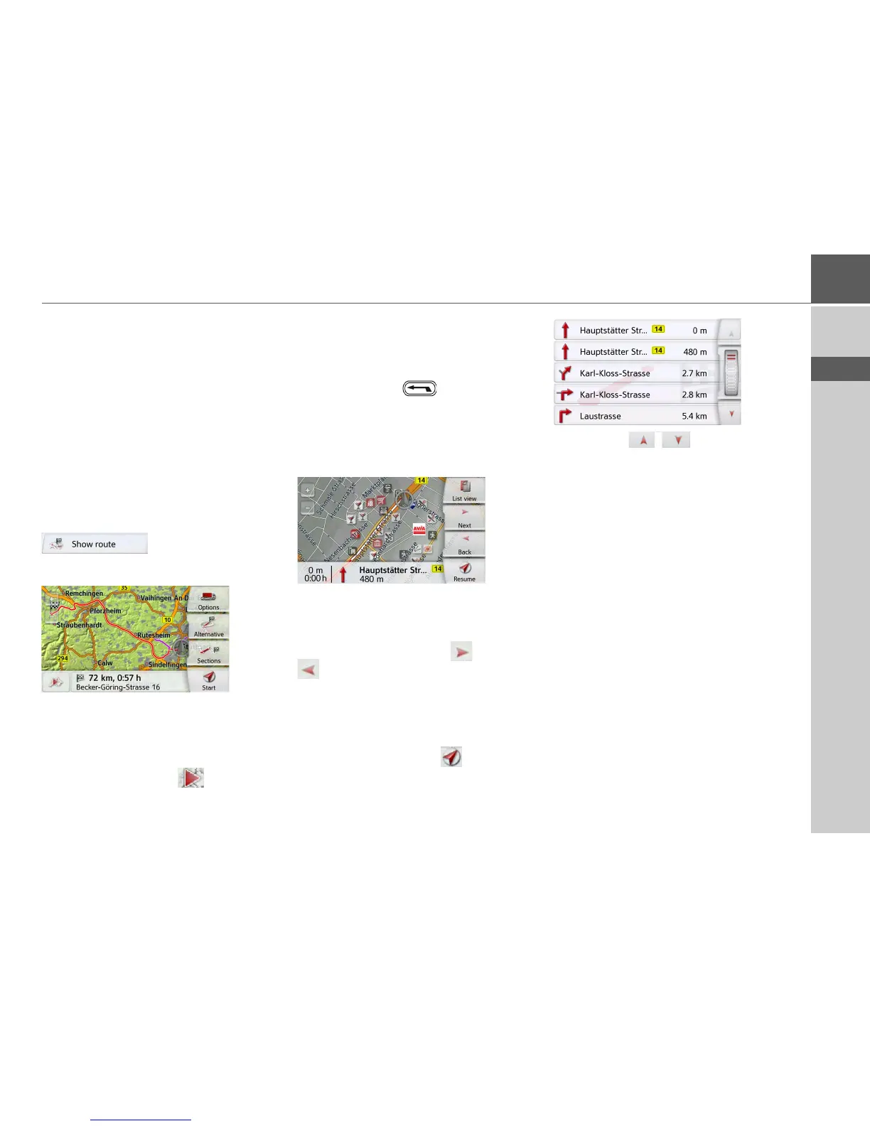 (Only available when route guidance is
