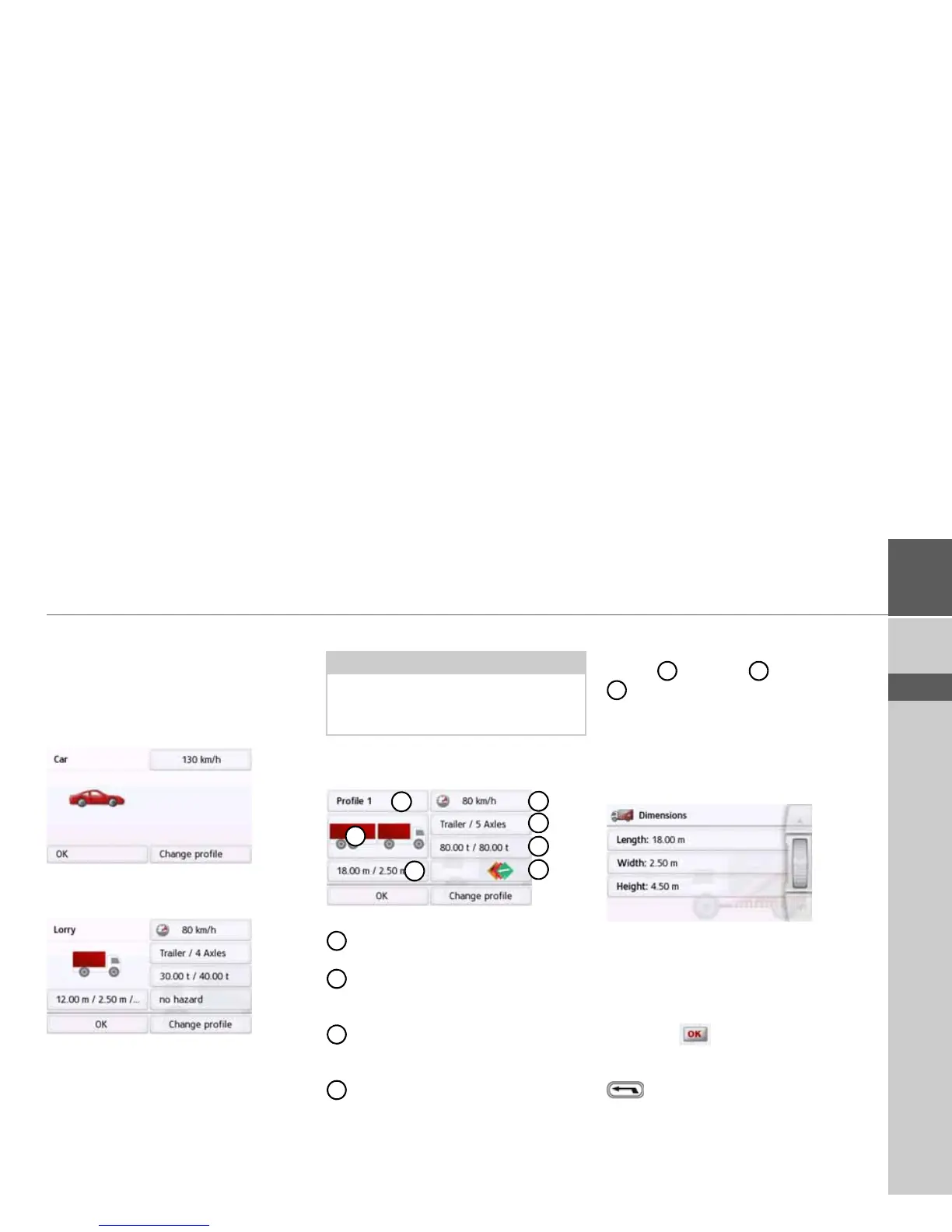 > Select one of the saved truck profiles