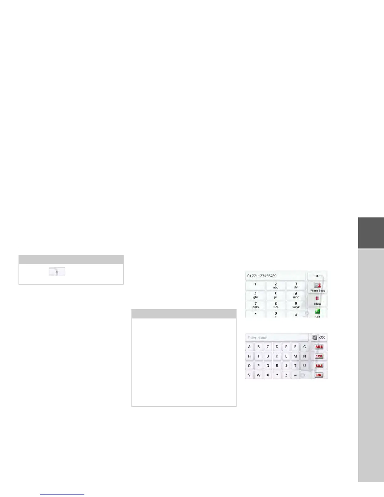 In the phonebook, the system displays