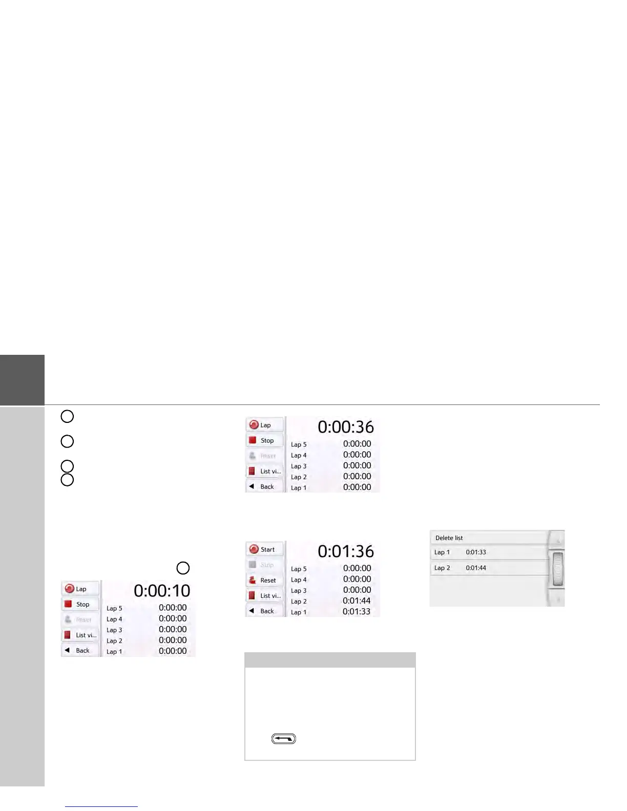 Calls up the stopwatch with lap