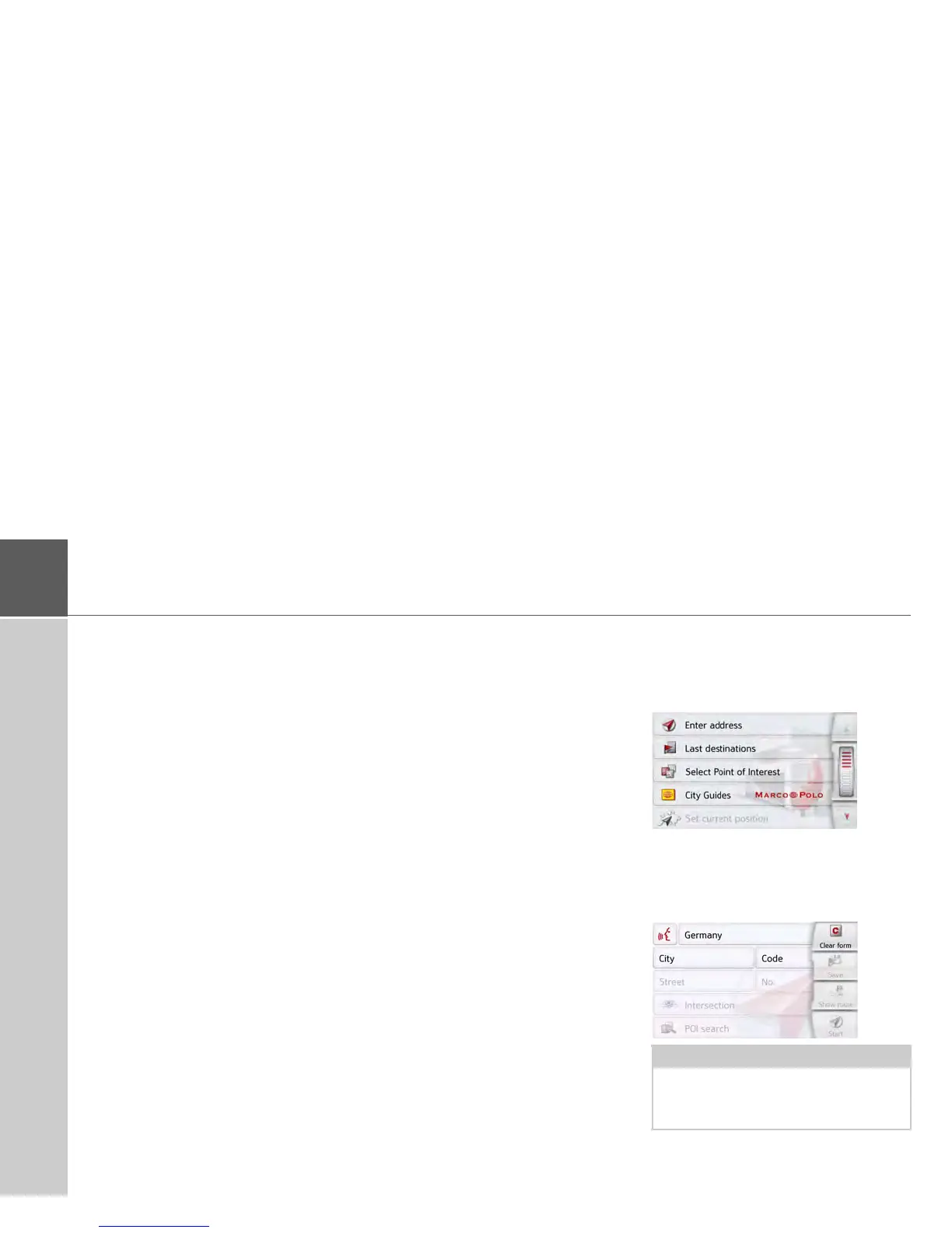 • See "Entering the address" on page 44.