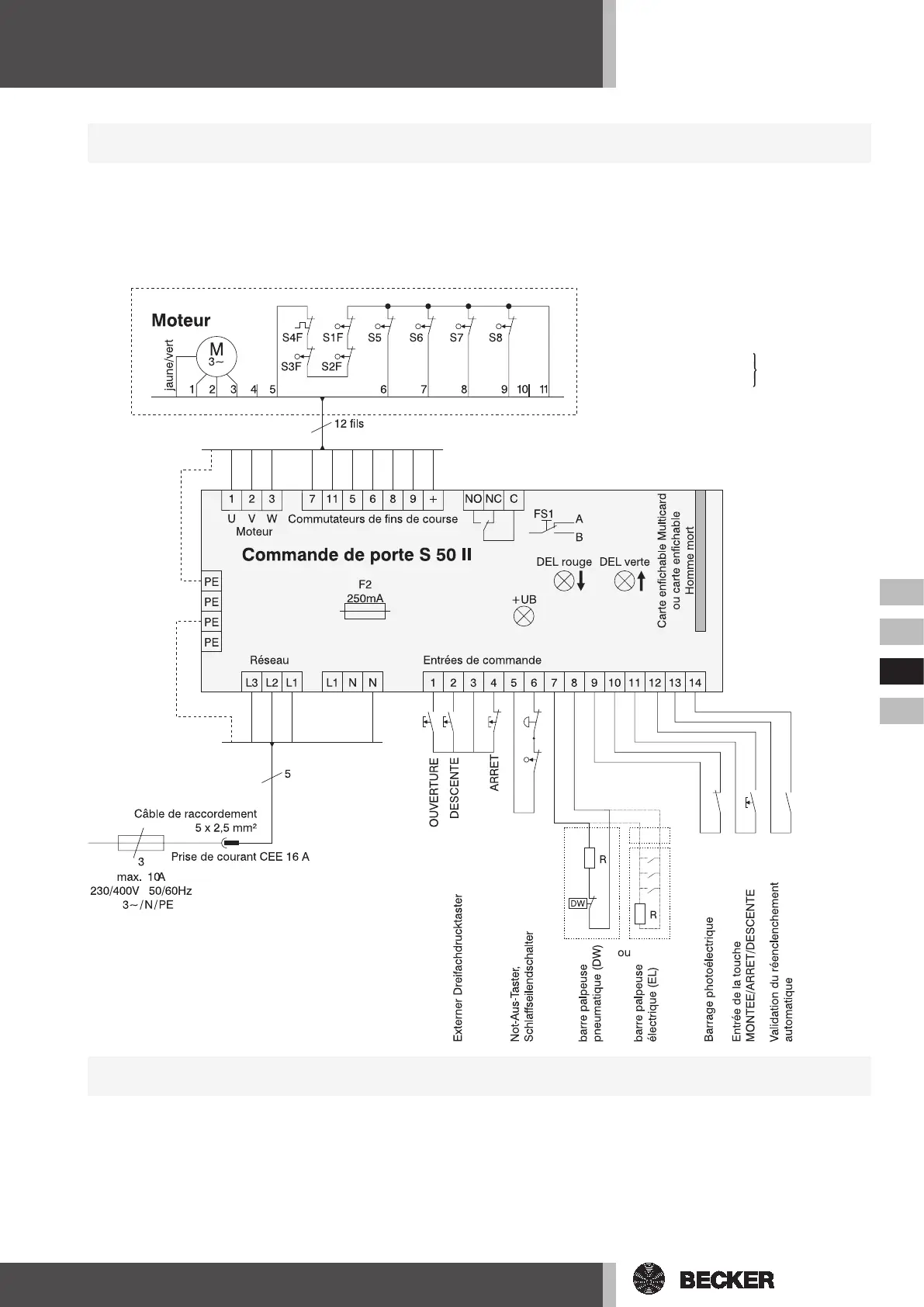 Alimentation secteur: 3 x 400/230V 50/60 Hz (L1, L2, L3, N, PE)