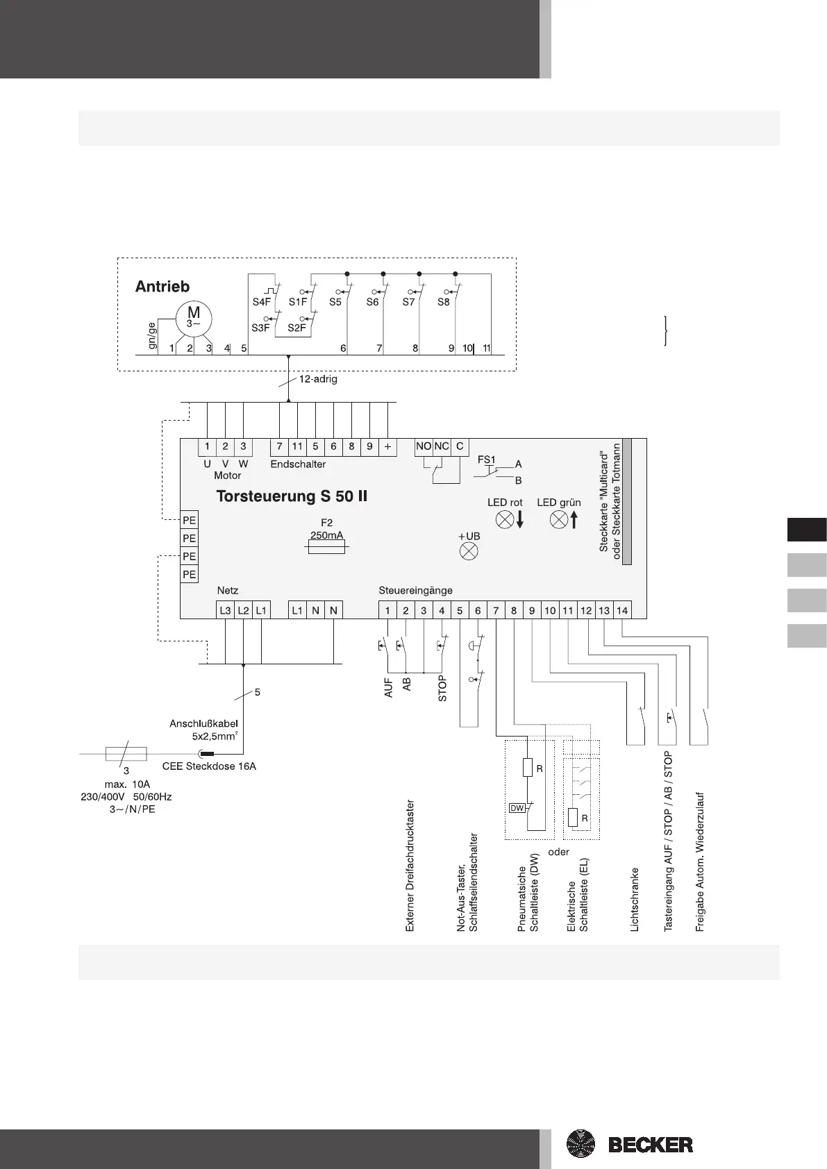 Netzanschluß: 3 x 400/230V 50/60 Hz (L1, L2, L3, N, PE)