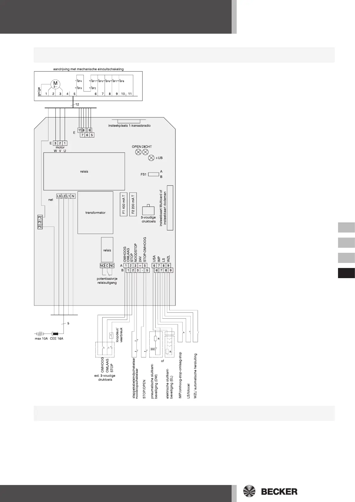 FS1=B Relaisaansturing door eindschakelaar S8