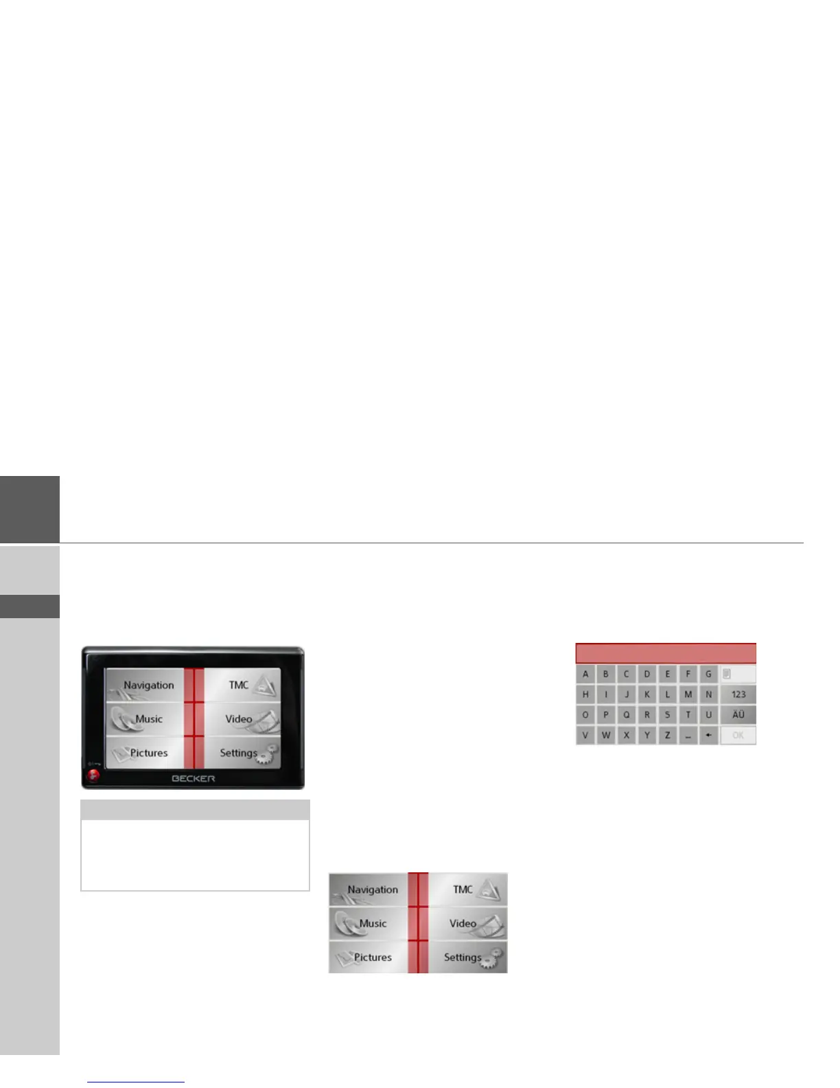 menu. The central area is used to enter