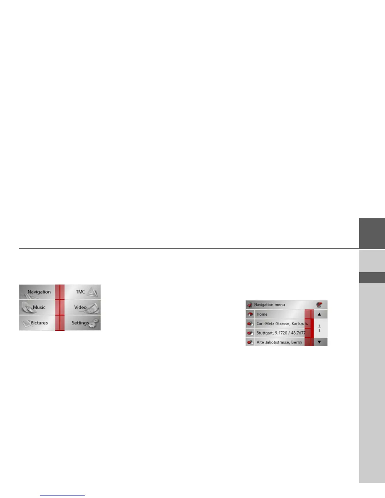 Navigational mode is called up from the