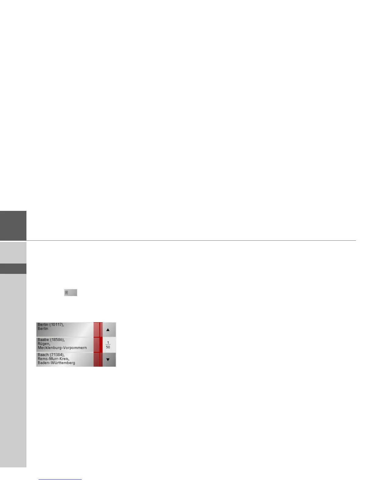 of the screen to call up the list of towns.