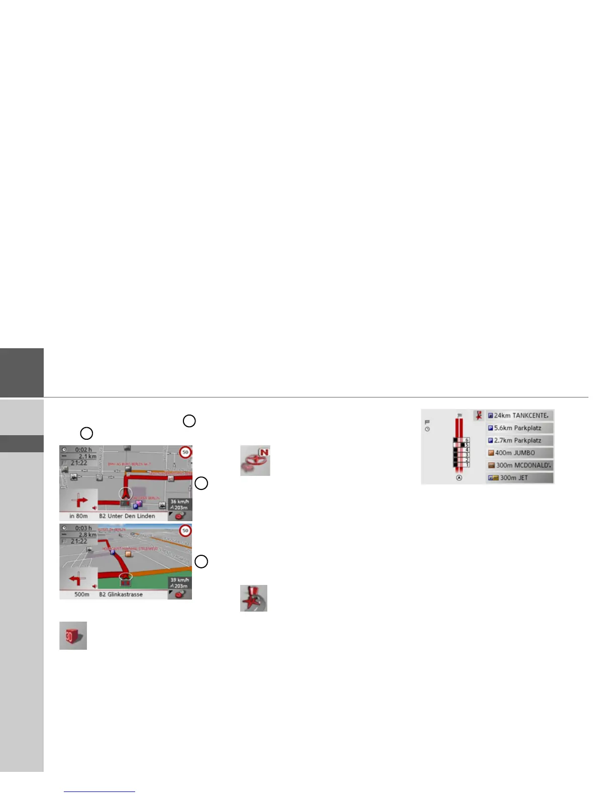 Available POIs along the route (toolbar)