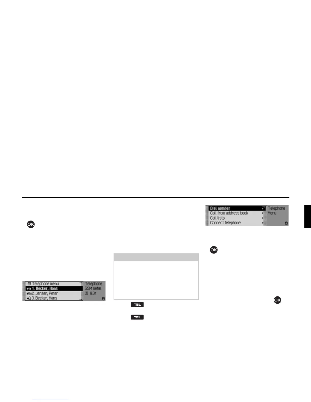 enter/ select telephone numbers, call up