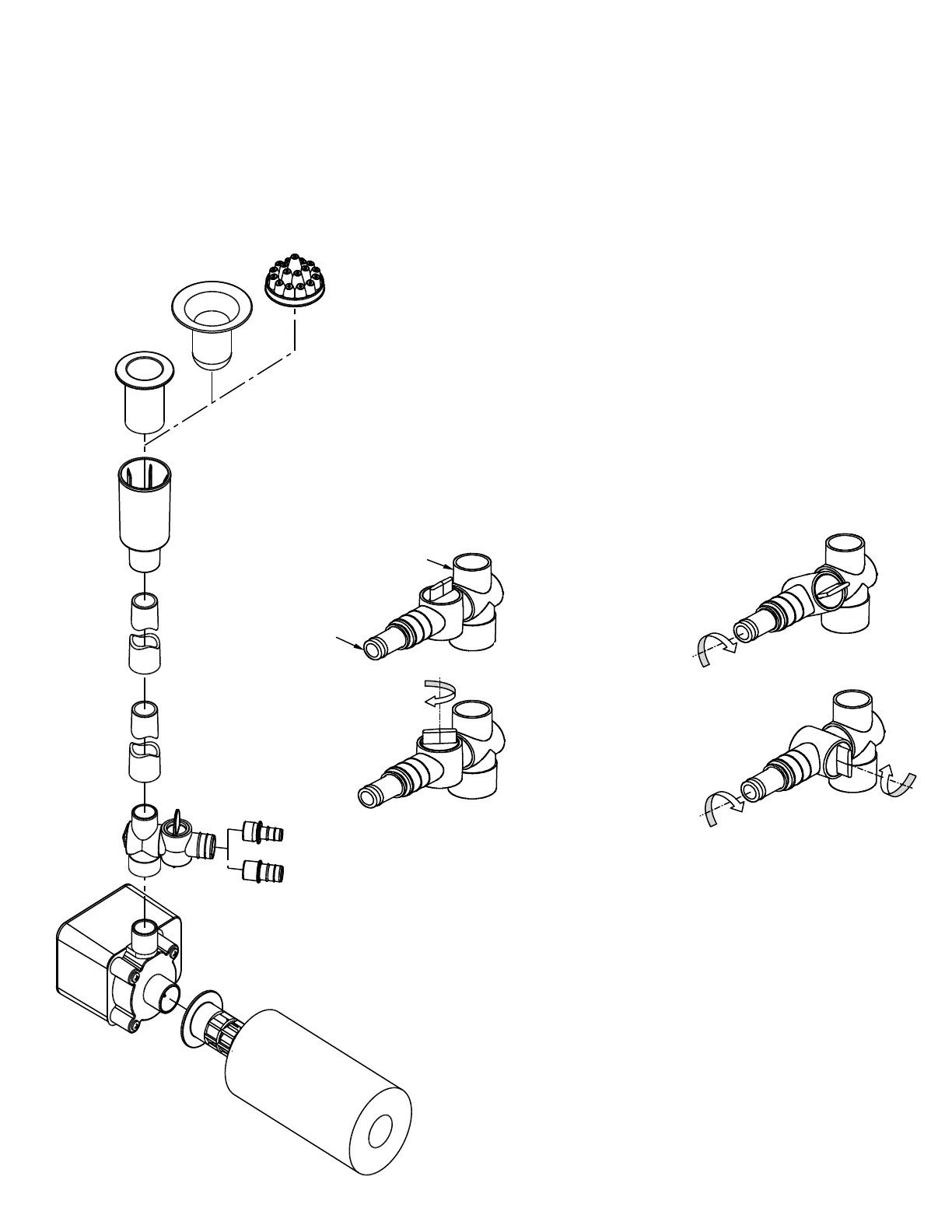 Install the two-way flow control valve, extension tubes and fountain body. These connect using a taper