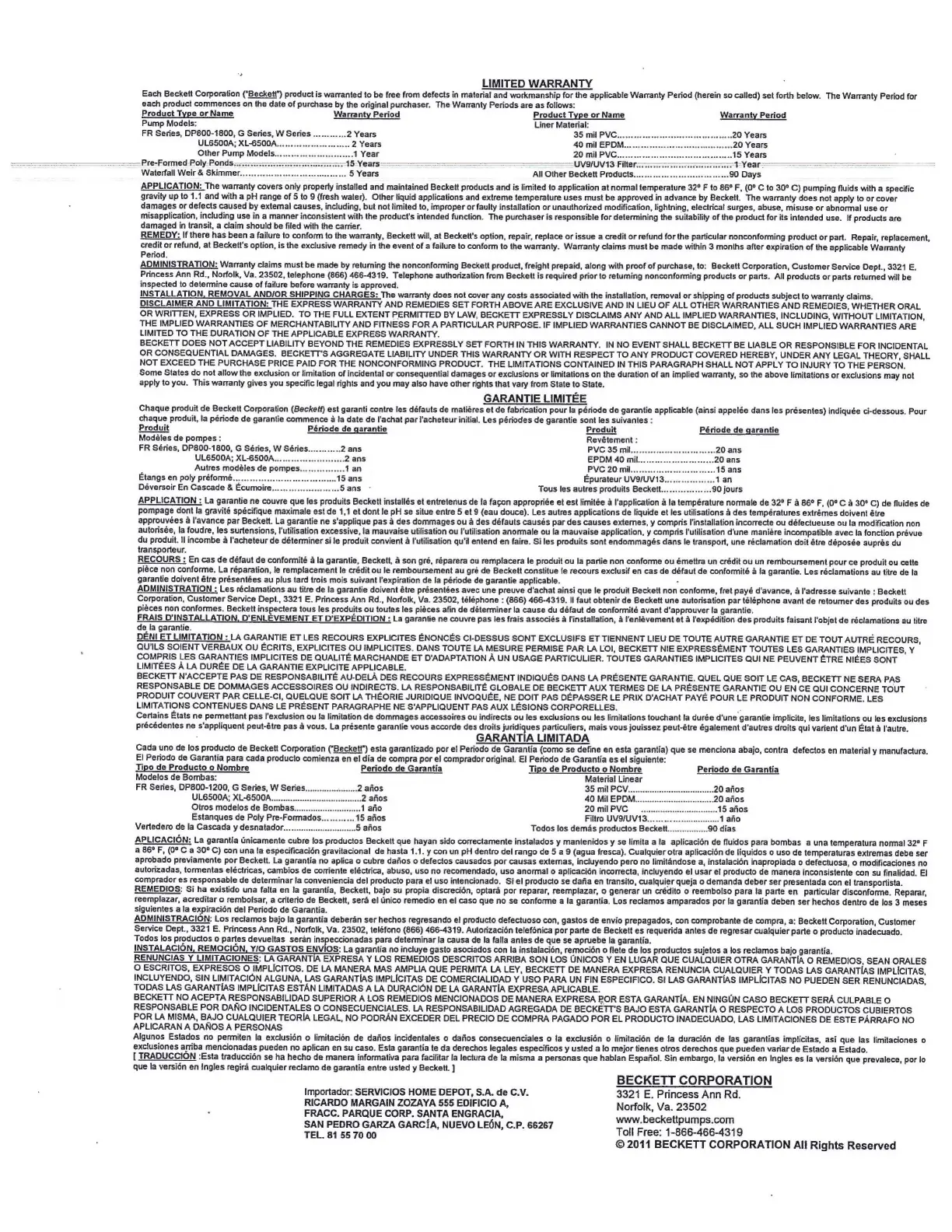 Beckett M60A - Warranty Information; Warranty Terms and Conditions; Warranty Claims and Limitations