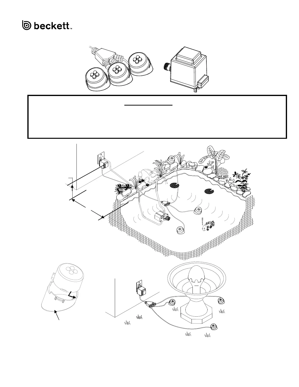 Las luces de acentuación de Beckett le permiten resaltar su jardín acuático y fuentes, durante la noche.