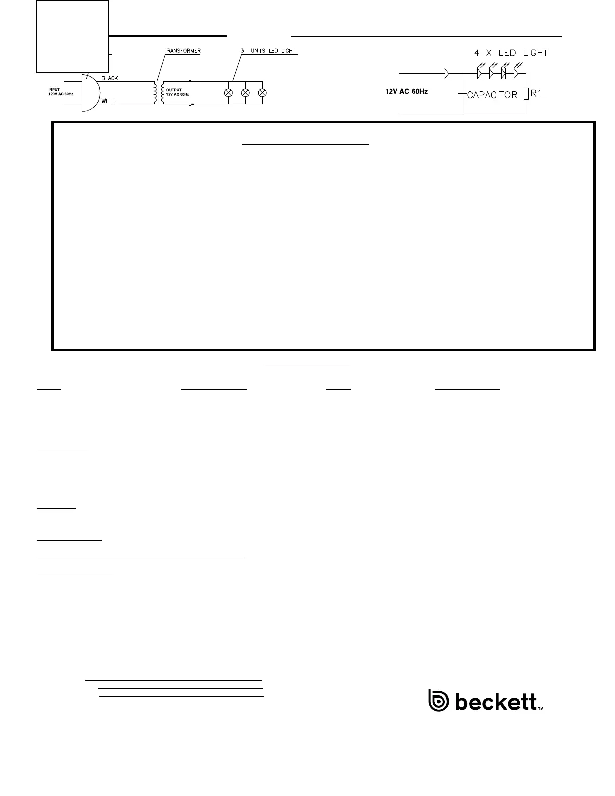 RECOURS : En cas de défaut de conformité à la garantie, Beckett, à son gré, réparera ou remplacera le produit ou la partie non conforme ou émettra un crédit ou un