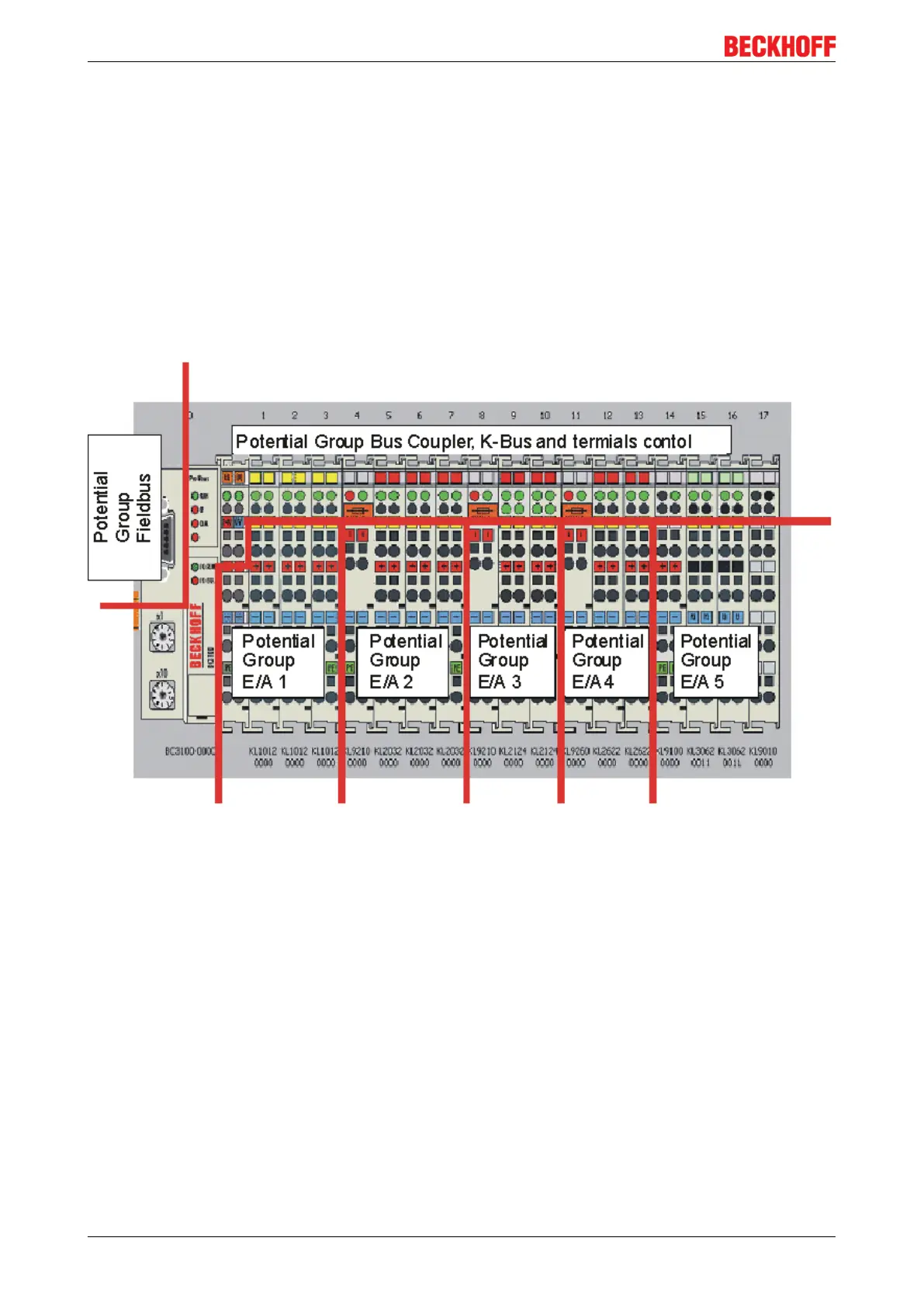 A Beckhoff Bus Terminal block usually has three different potential groups: