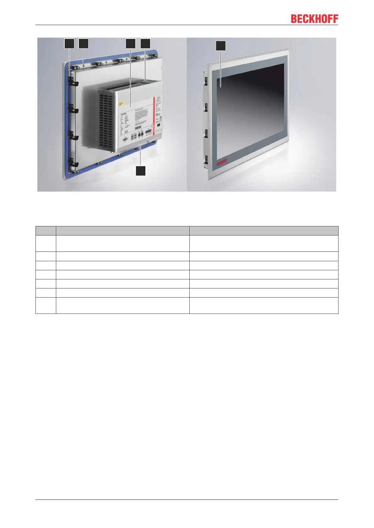 1 Clamping lever Mounting the panel PC in the panel of the control