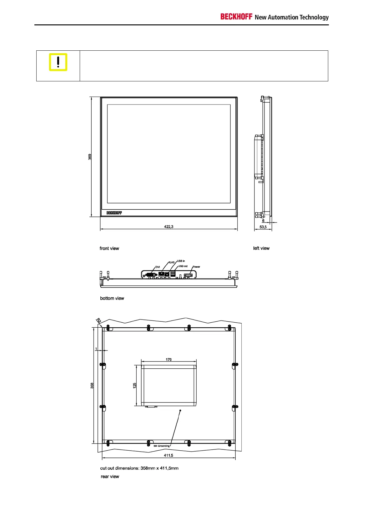 CP2919 with 19“ display, landscape (all dimensions are in mm)