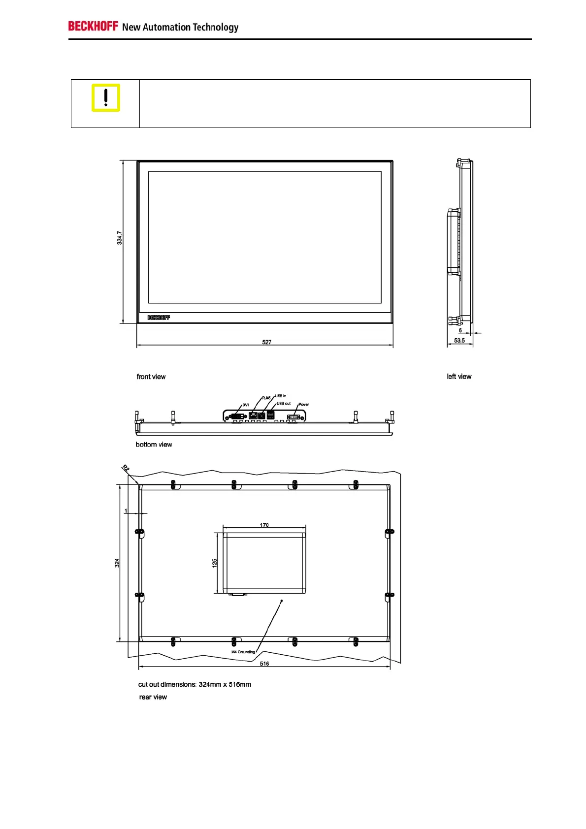 CP2921 with 21.5“ display, landscape (all dimensions are in mm)