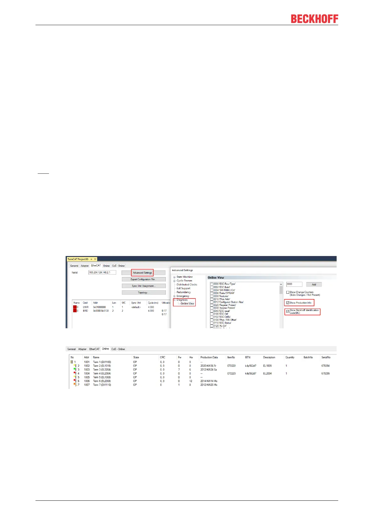 check the checkbox "Show Beckhoff Identification Code (BIC)" under