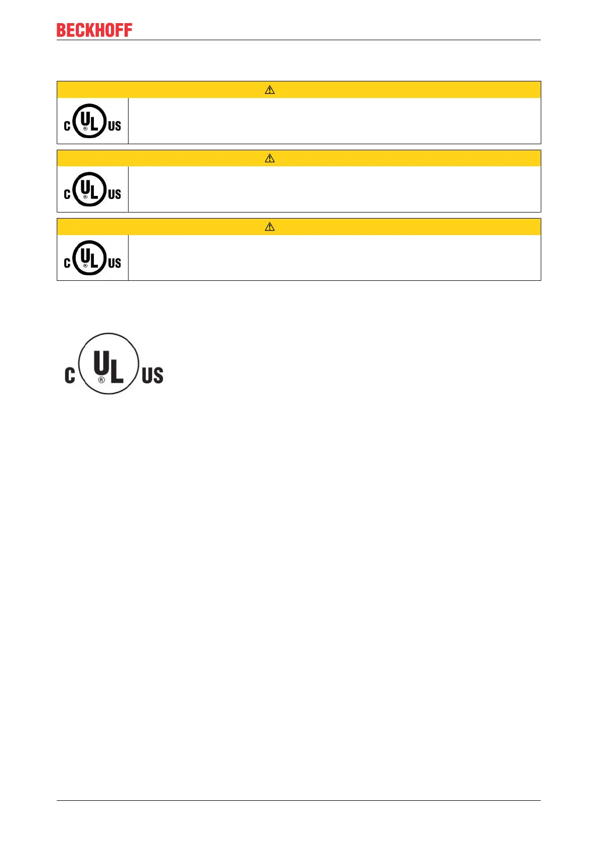 For cULus examination, the Beckhoff I/O System has only been investigated for risk of fire
