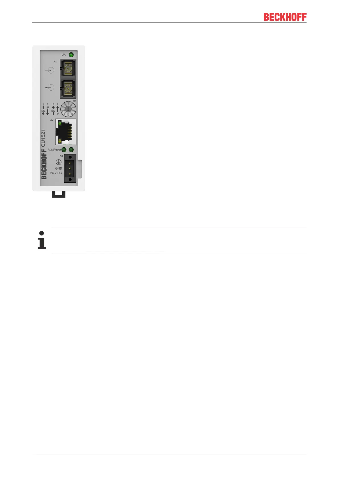 Please ensure that the CU15x1 engages properly on the mounting rail.