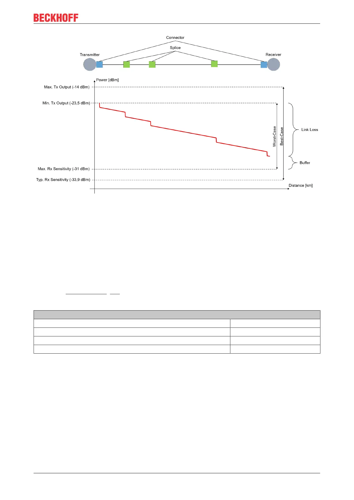 calculated. A multimode fiber in the strength 50/125µm from Beckhoff (ZK1091-1001-xxxx) is used for this
