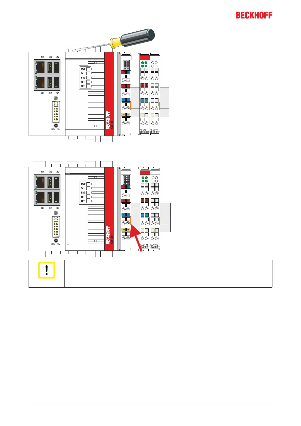 After pulling the terminal release of the power supply unit, the block can be removed carefully from the top-