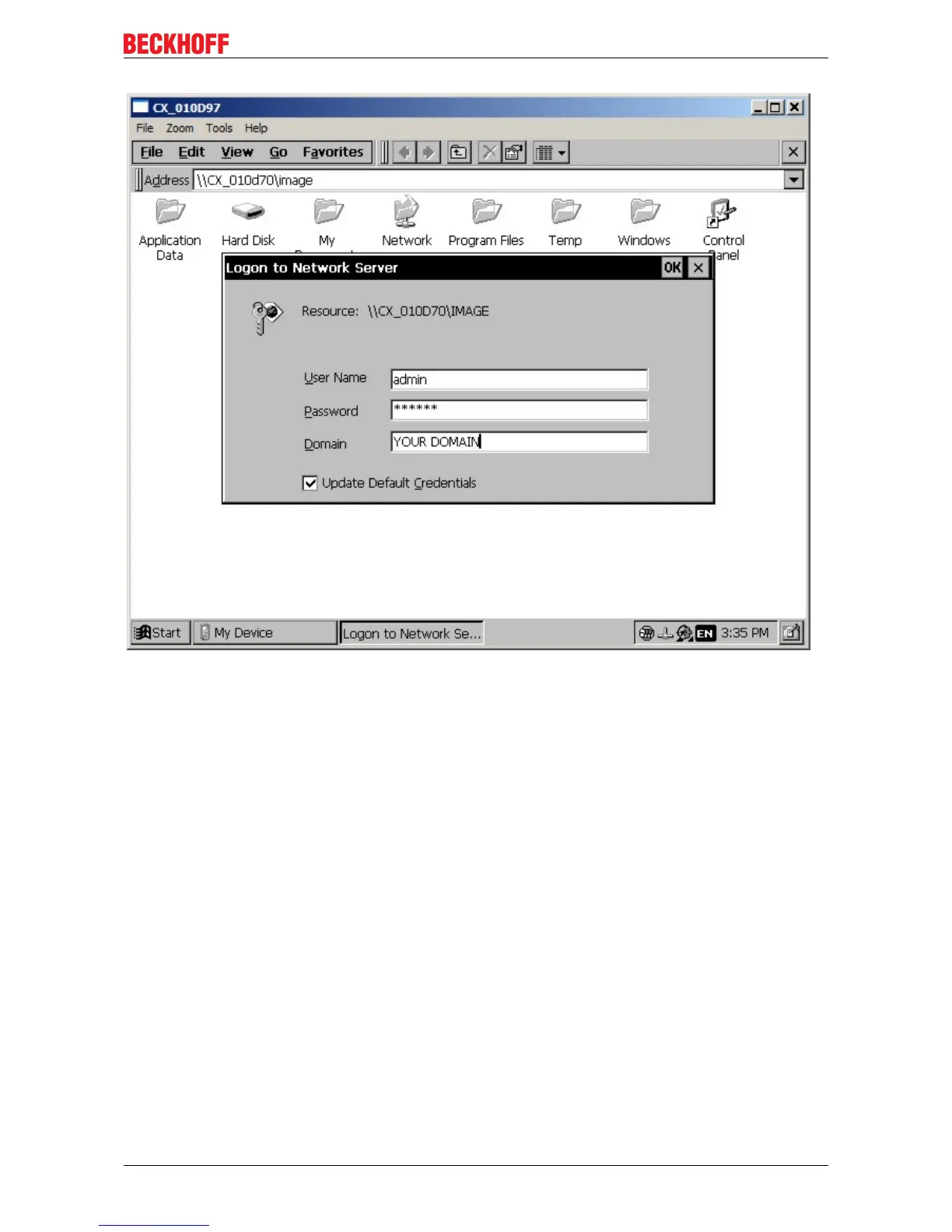 If the image is copied to the CX90x0 or the network drive is mapped to the system the update tool can be