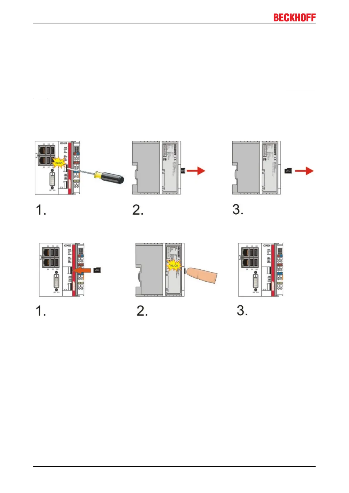 The following images illustrate the handling of the µSD cards. The eject mechanism is based on the push-