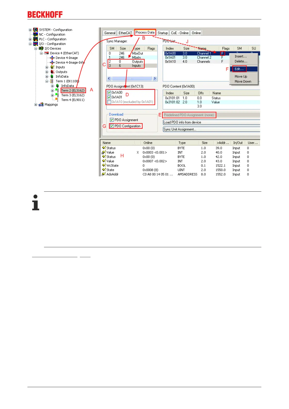 overview (Fig. “Configuring the process data”, J). The configuration of such PDOs cannot be