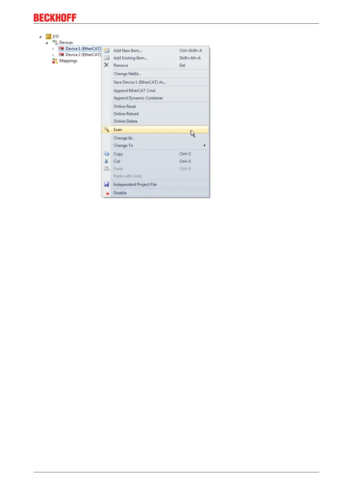context menu of "PLC" in the project folder explorer by selecting "Add New Item….":