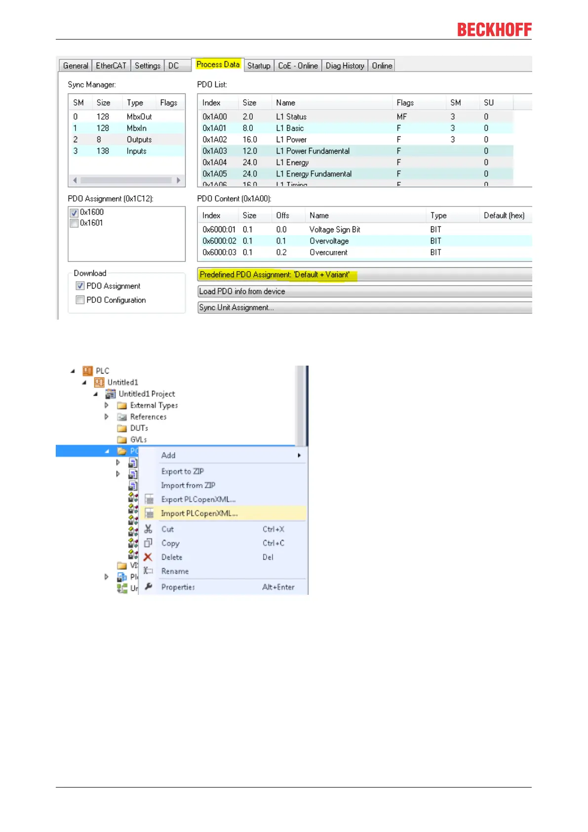 Fig.172: Selection of predefined PDO Assignment "Dafault + Variant"