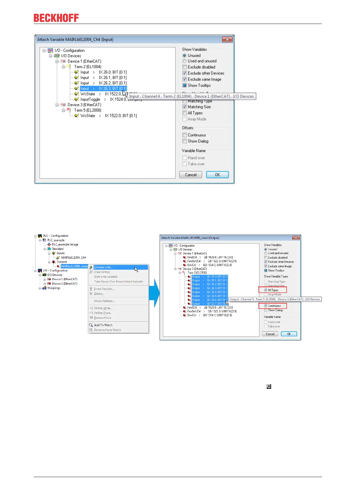 of channel 4 of the EL1004 terminal is selected for linking. In contrast, the checkbox "All types" must be