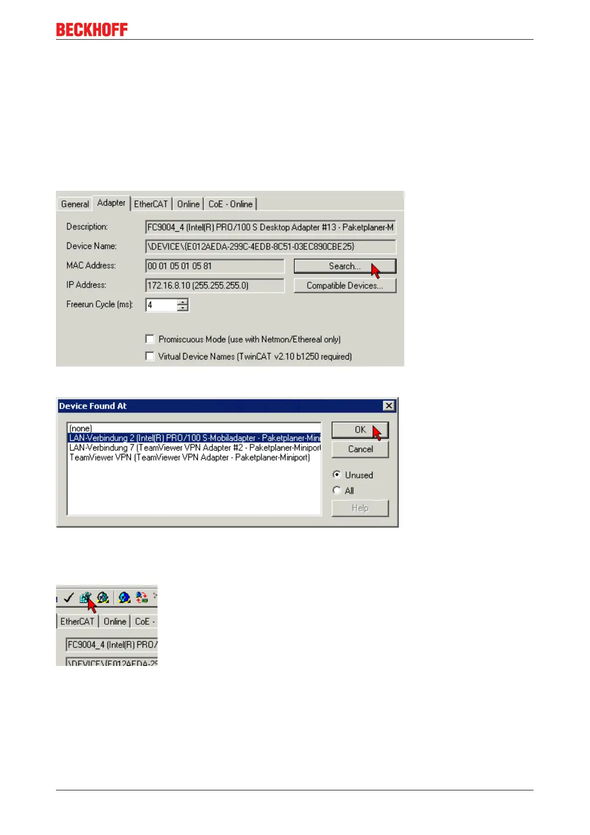 appropriate adapter and confirm (see Fig. Searching the Ethernet adapter + Selection and confirmation