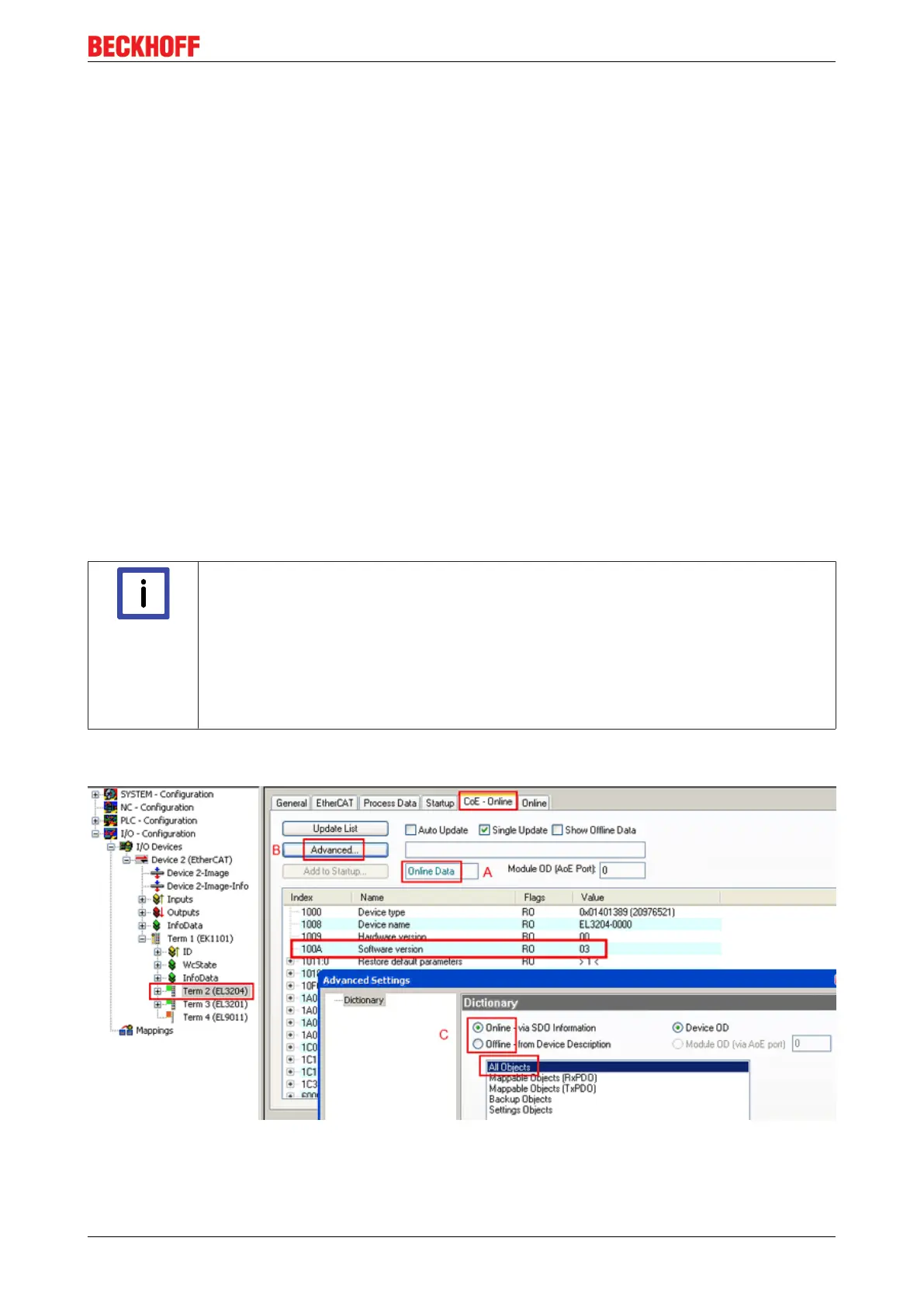 CoE. This CoE directory can only be displayed if it is included in the ESI (e.g. "Beckhoff