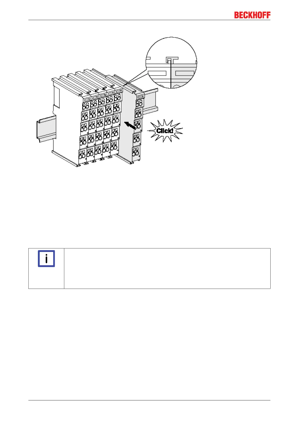 nents with tongue and groove and push the terminals against the mounting rail, until the lock clicks