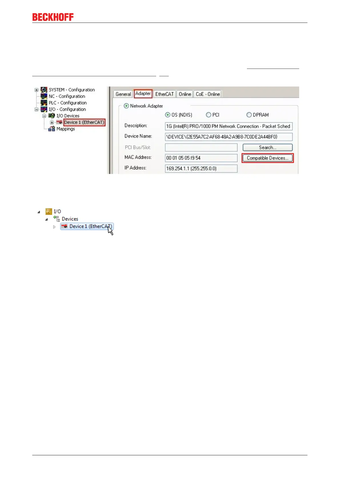 creation, section “Creating the EtherCAT device” [}54] in order to view the compatible ethernet ports via its