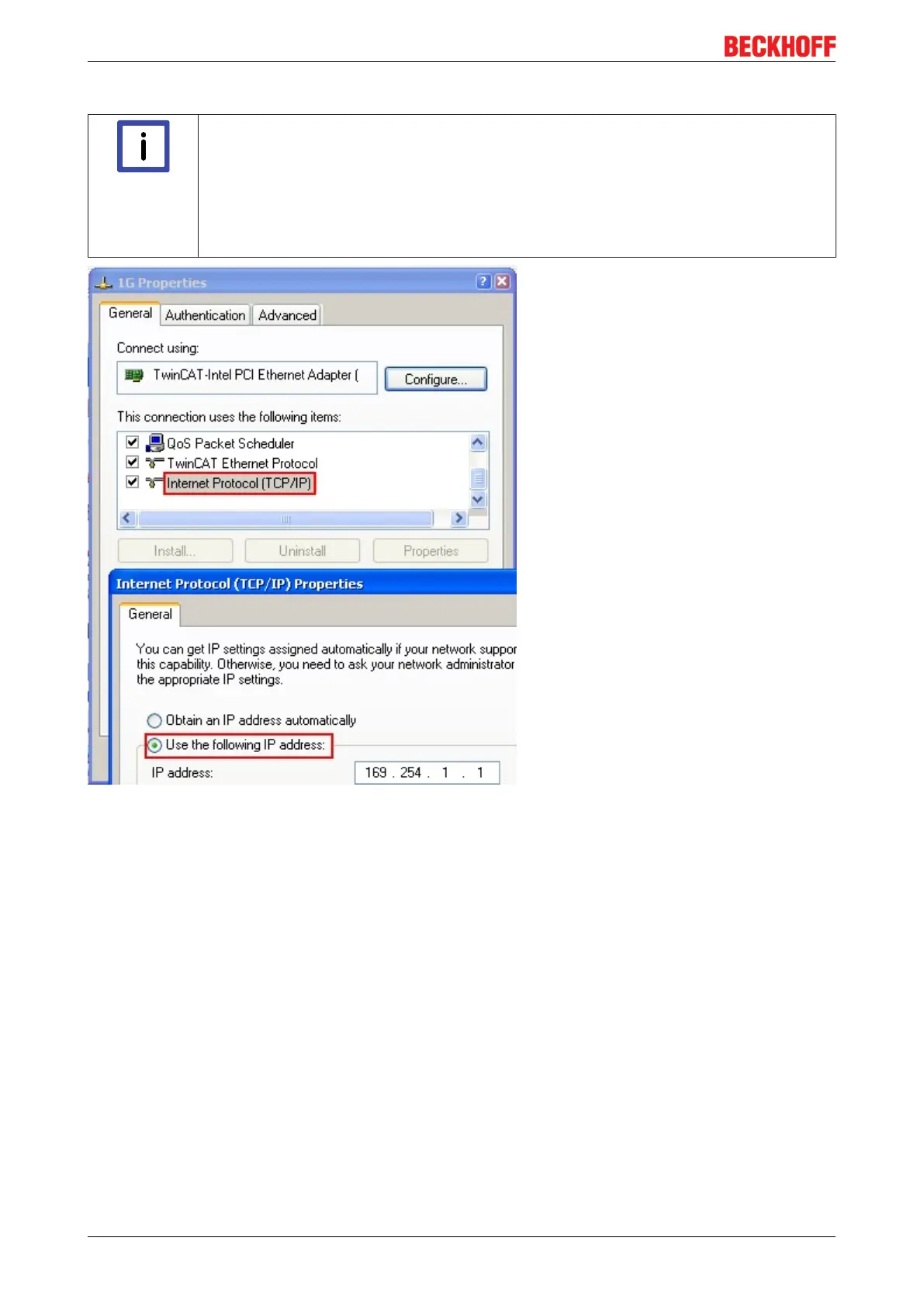 used it is useful to specify a fixed IP address for this port via the “Internet Protocol TCP/IP”